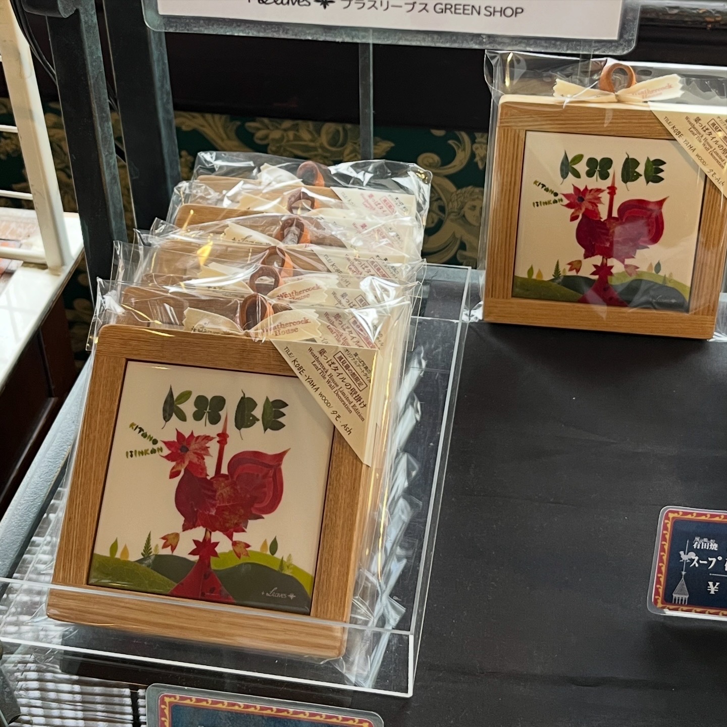 神戸北野異人館の「風見鶏の館」と「ラインの館」のそれぞれのスーベニアショップにて、葉っぱタイルの壁掛けや、ポストカード、葉っぱ柄のハードタイプ文庫本カバー「ブックフェイス」を、取り扱っていただいております。今日はその作品たちを追加納品してきました。