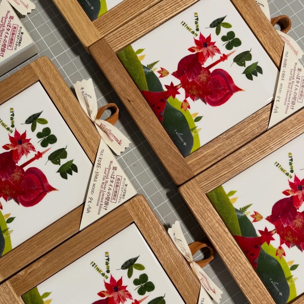 風見鶏の館へは、限定絵柄の葉っぱタイルの壁掛け2種をお届け。